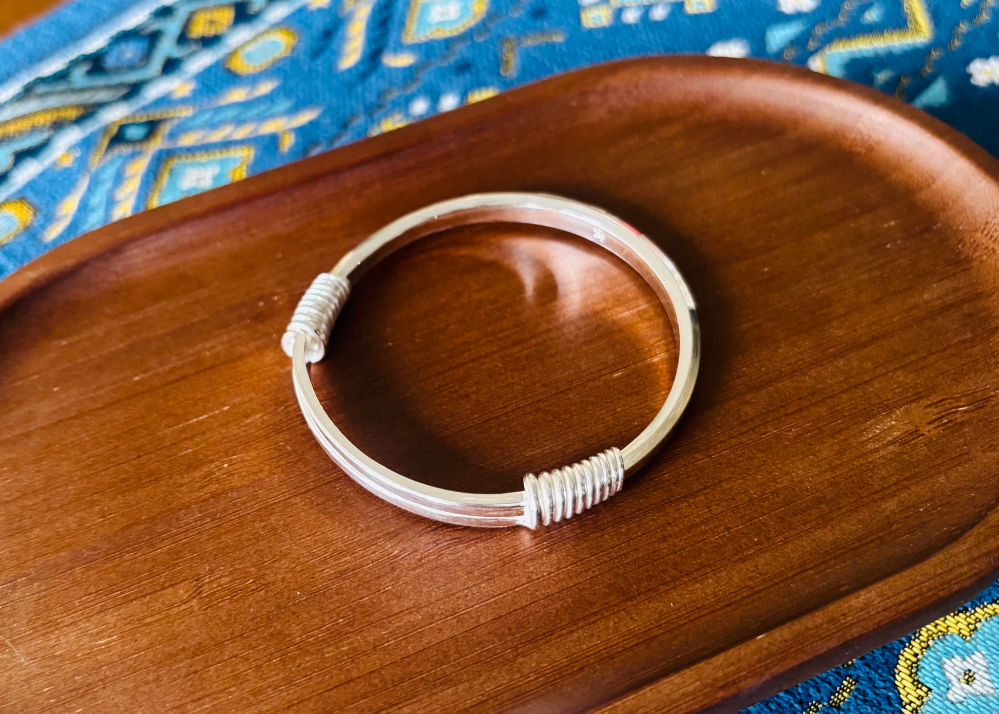 Classic Sterling Silver Bangle Square Shape Adjustable Pure Silver