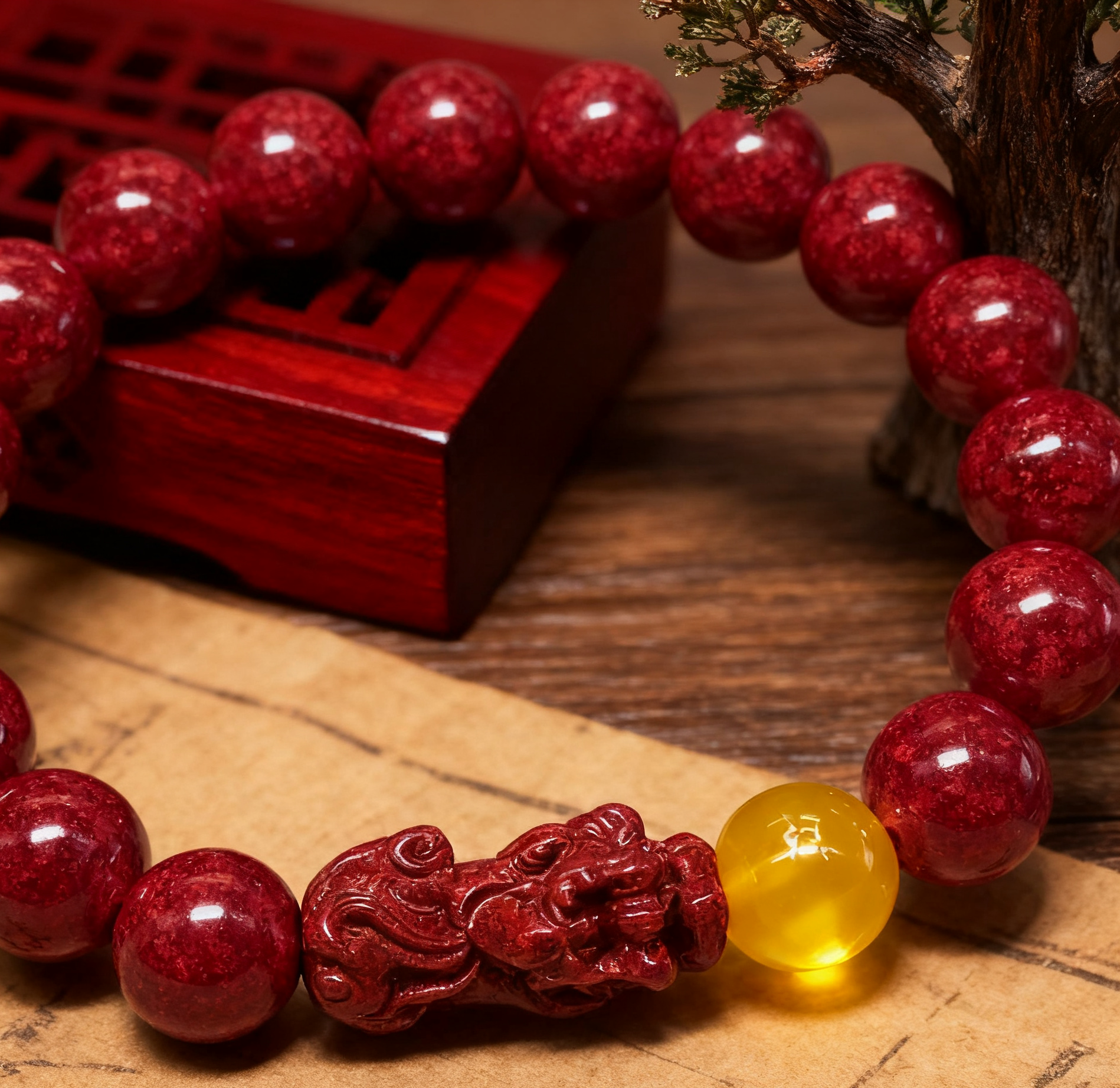 Wealth Beast 8-10-12MM Cinnabar Beads Bracelet