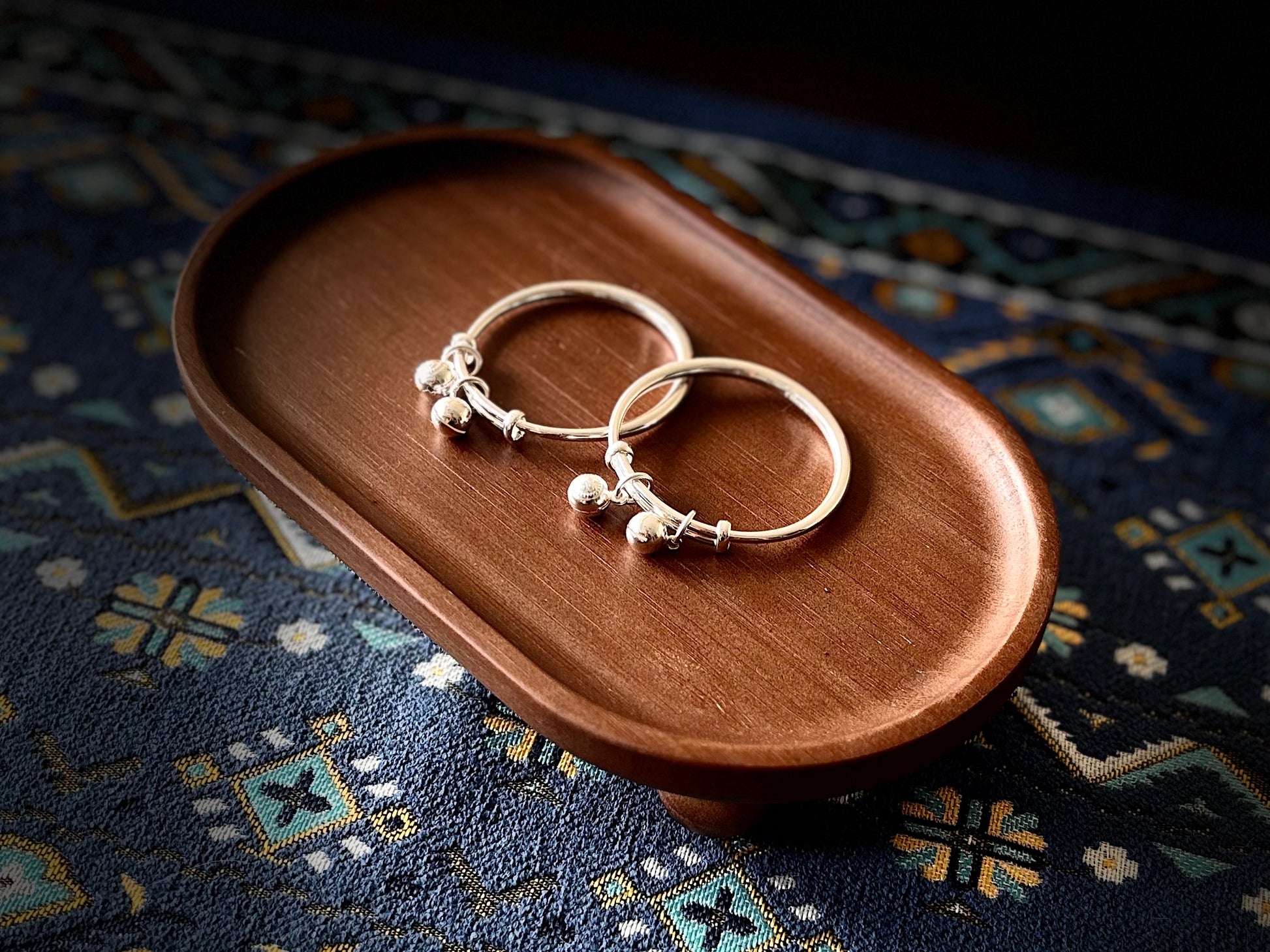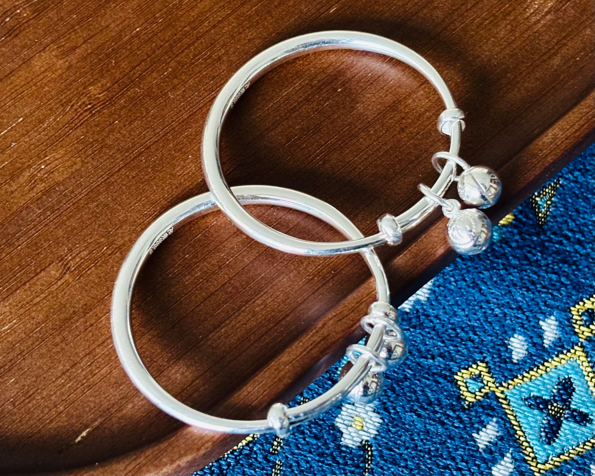 「乡野丫头」侗寨传福|可调节999纯银儿童推拉铃镯一对