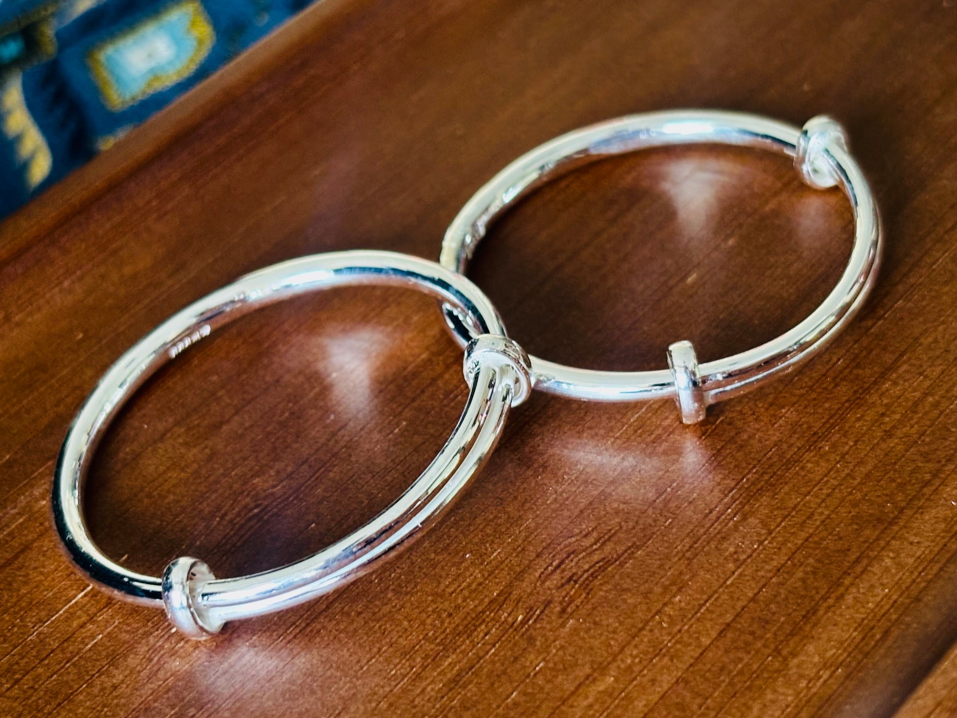 「乡野丫头」侗艺传福|可调节999纯银童镯一对 成长中的东方守护