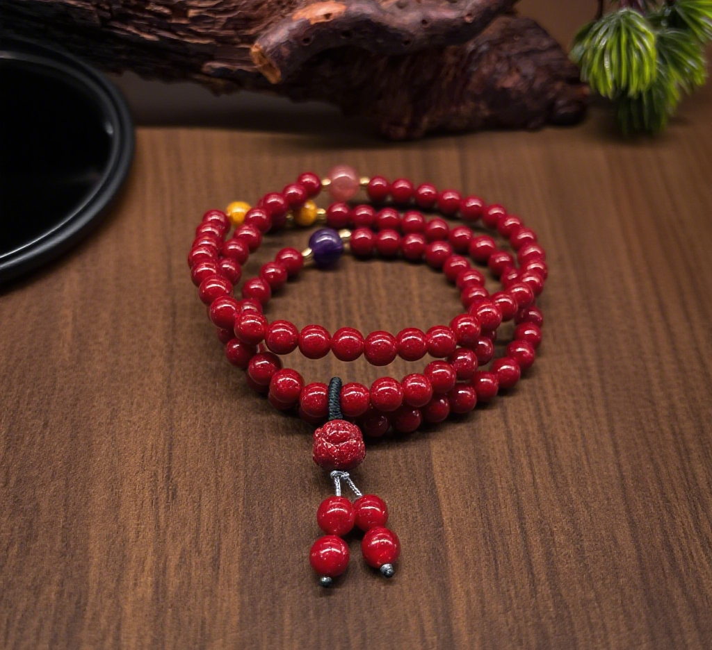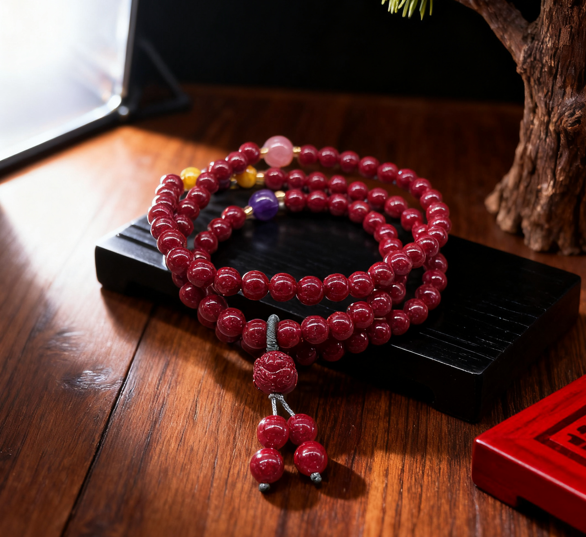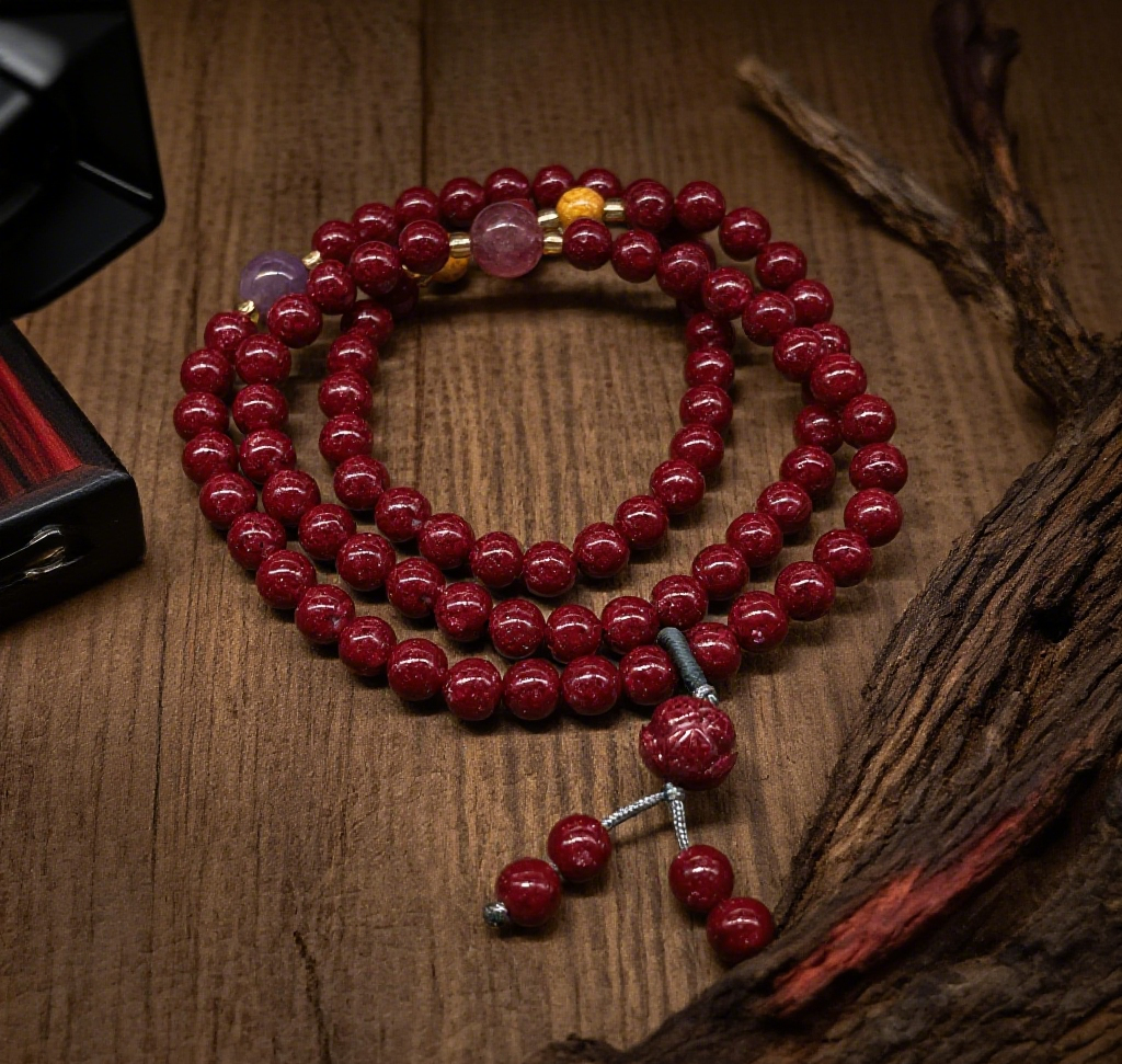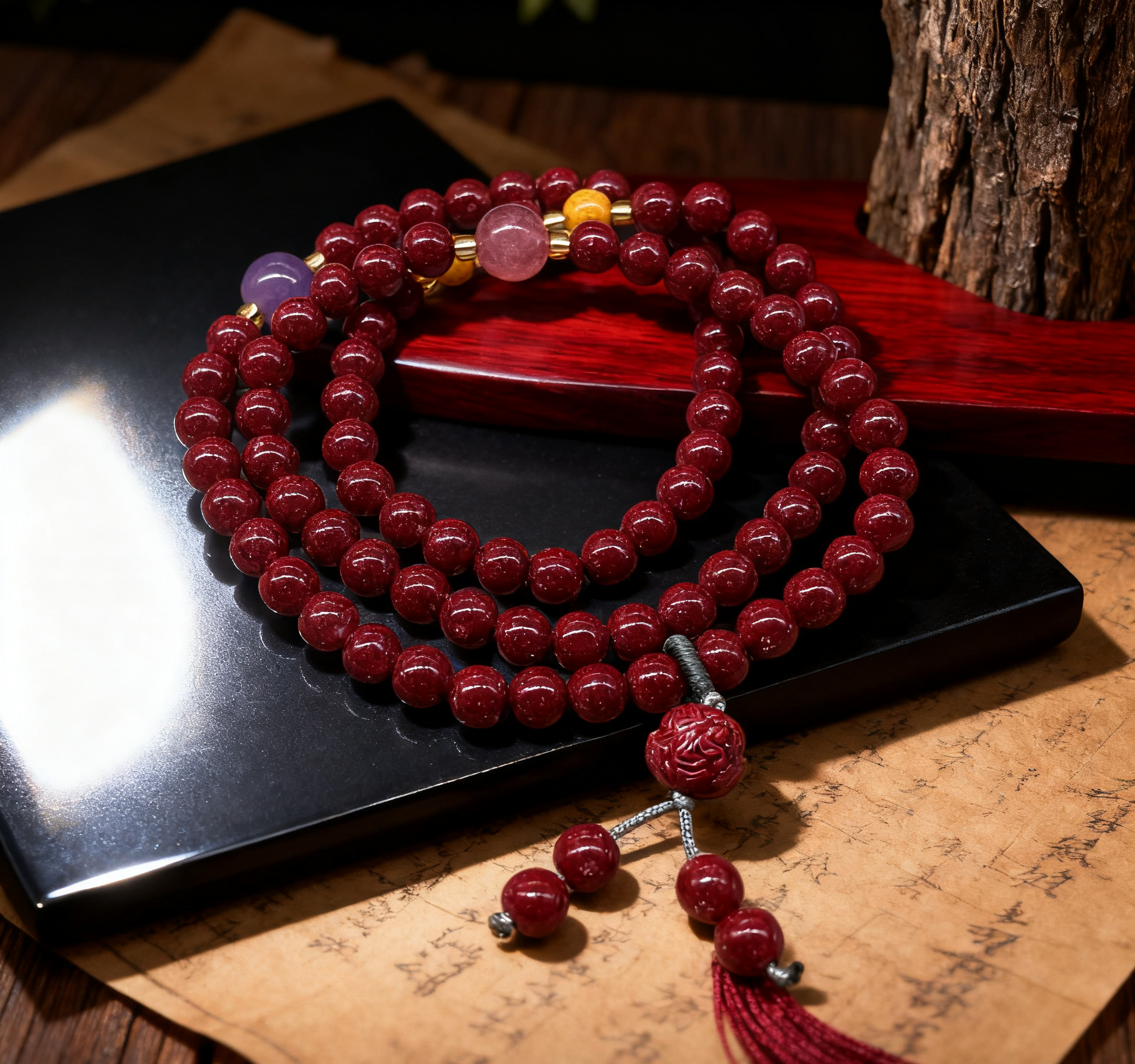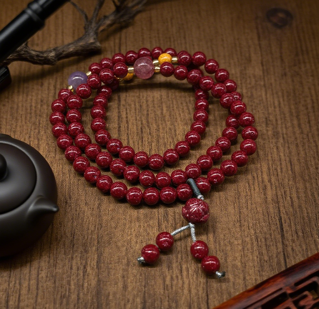 ▫️ 三重防护:朱砂防小人 + 草莓晶招正缘 +雄黄水晶防蛇虫鼠蚁+紫水晶智慧之石